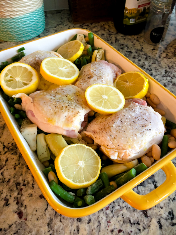 We hit up Whole Foods on the ride home. (I loved that our drive home was only 20 minutes!) I went to the gym for a bit, played fort with Mazen, and assembled a lemon + artichoke version of my favorite Chicken and Bean Bake for dinner.