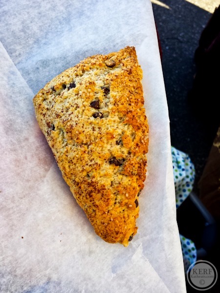 Katie insisted on buying me my birthday breakfast, so we both enjoyed some scones. Chocolate chip!