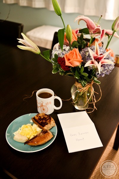 I woke up to a lovely bouquet of flowers and a wonderful gift from Mazen, Matt and Karen for a few spa treatments!! A perfect gift for a mama who needs a little pampering. I ate scrambled eggs, half a banana and some toast, most of which I shared with Mazen so I could save room for a scone at the market.