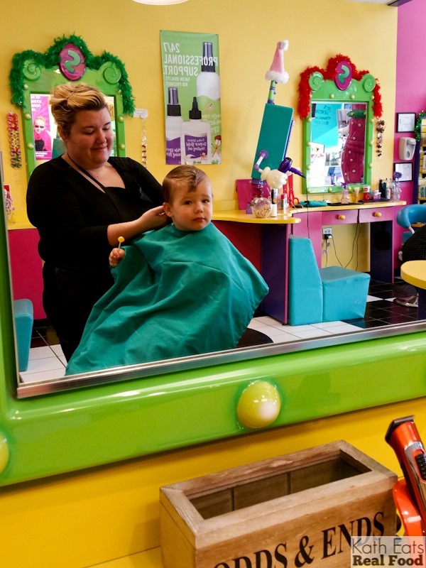Mazon is so cute getting his hair cut. I really need to take my LO before Christmas, I am just not sure he will sit still. I will try the lollypop trick and stash one in my purse.