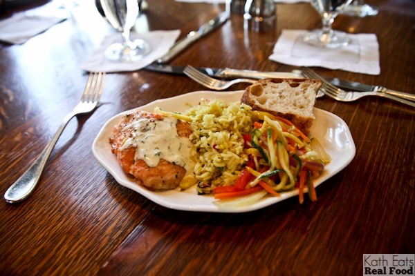 And then salmon, saffron rice and yummy veggies for the main course