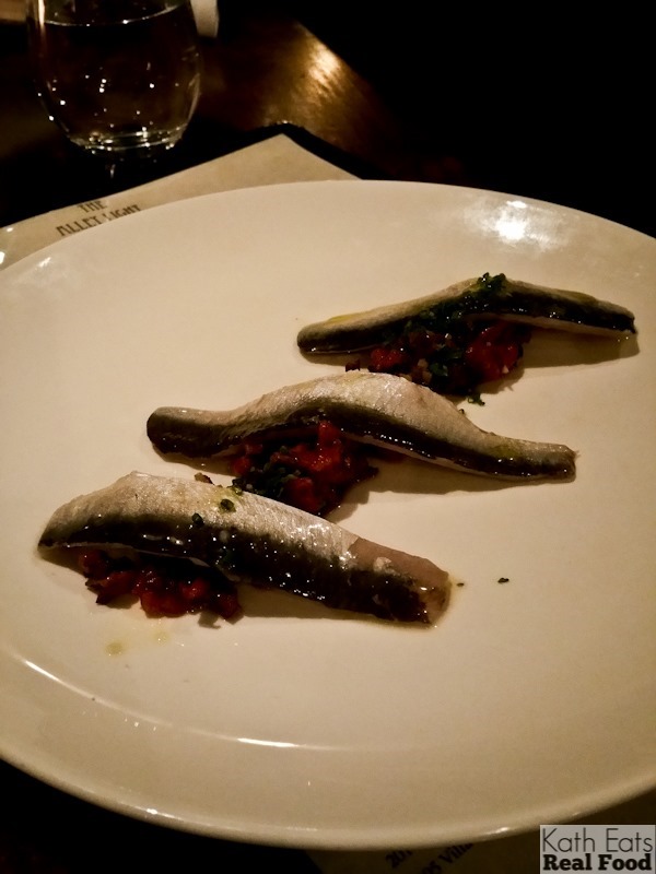I had the sardines (for my weekly dose that I keep forgetting!) They tasted so fresh! Loved the tomatoey lemon olive tapenade underneath.