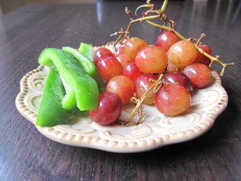 And my produce place – grapes + peppers, which were good dipped in the yolk!