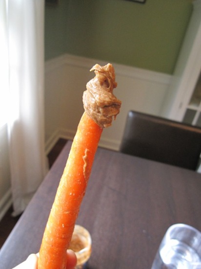 And went back for a dollop. Carrots taste a MILLION times better with salty PB!!