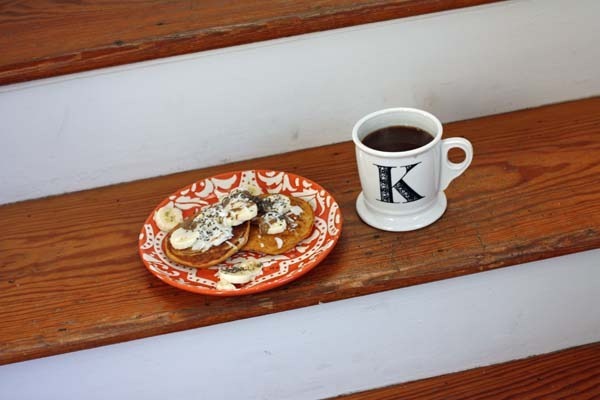 The ‘cakes were topped with ghost blood, chia seeds, coconut and a drizzle of sunflower butter. OH and banana. Can’t forget the banana.