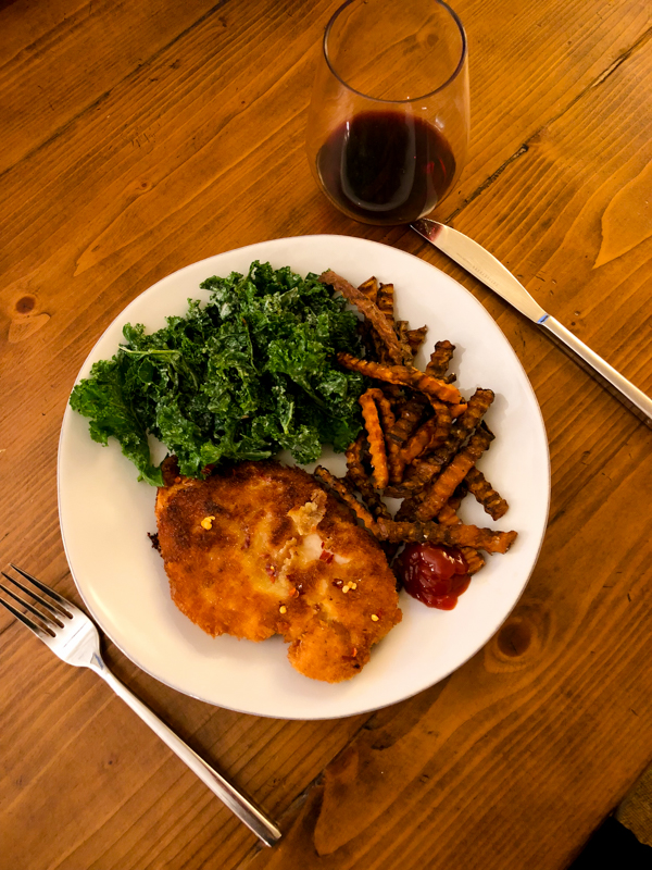 Honey fried chicken with sweet potatoes and kale (LOVED THIS!):