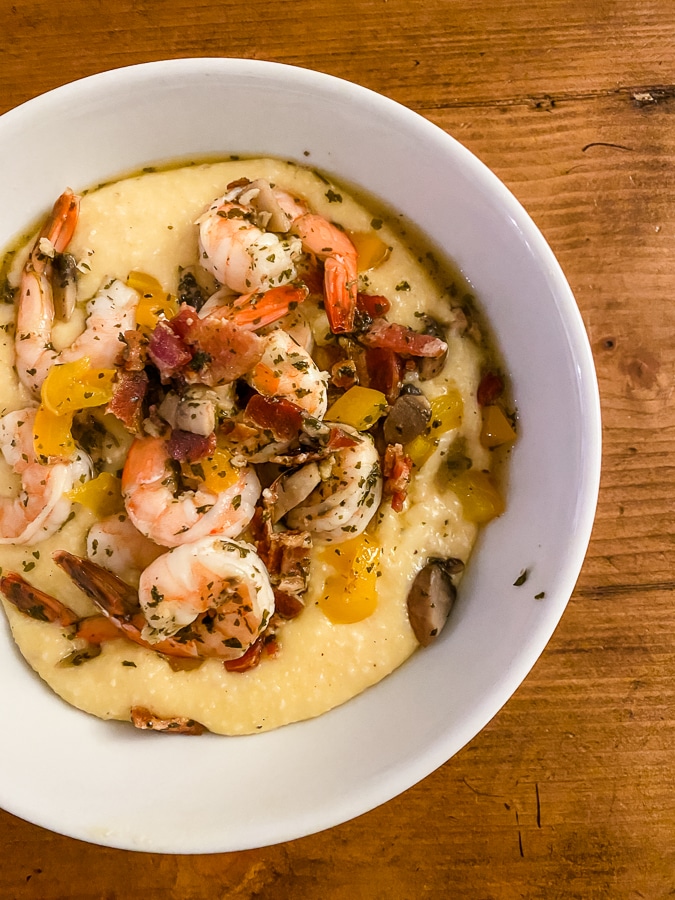We made some epic shrimp and grits last weekend! Classic and rich with mushrooms and peppers. They were even better as leftovers the next day. Often times we make extra food on Sundays to carry is to Mondays. Cook once, eat twice style!