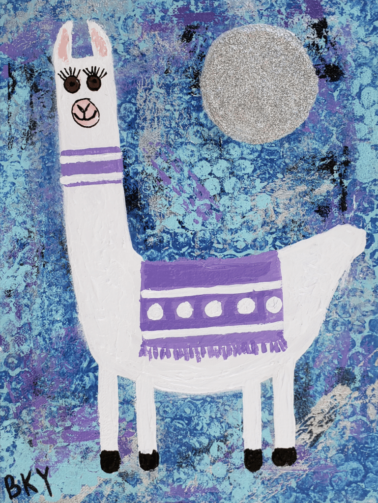 My mom is close to selling her 200th painting. Here is one of her latest paintings. I love its colors, and llamas are very on trend 🙂 Check out more of her work on her website.