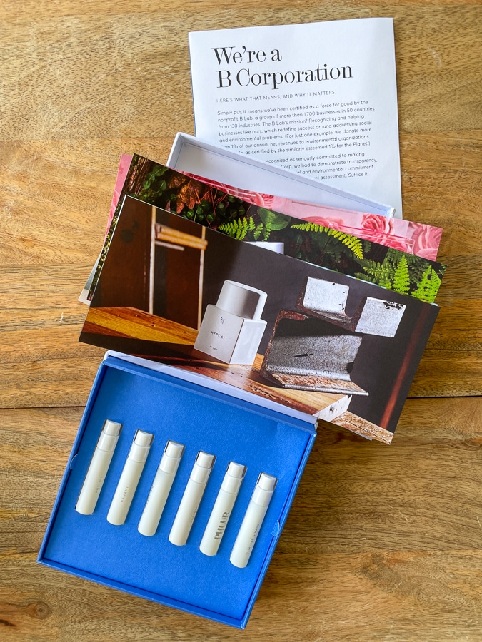 I kept seeing the fragrance company Phlur pop up and on a whim bought a six sampler set. Phlur is a B corporation, and has a lot of the same missions as Beautycounter does when it comes to ingredient testing, sustainability, and responsible sourcing. They are also Leaping Bunny Certified (a cruelty-free certification for non-animal tested products), vegan, and fair trade.