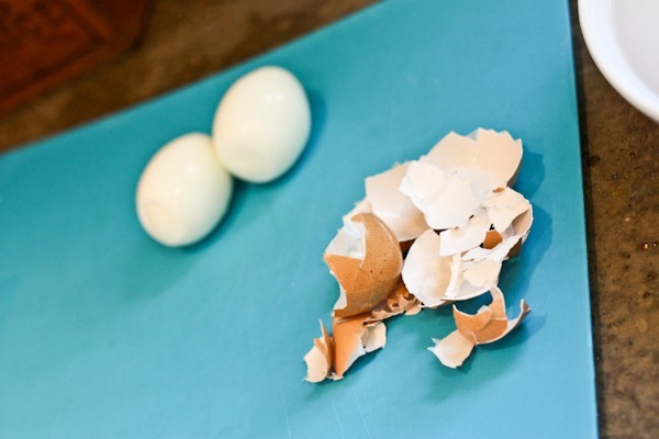 We buy farm-fresh eggs at a farmers’ market, which are great for almost everything, but older eggs actually peel more easily. We’ve actually started labeling a carton of eggs with a note saying “for hard boil” and letting them age a few weeks before hard boiling them. Even aged a few weeks, they are probably still way fresher than conventional supermarket eggs 😉