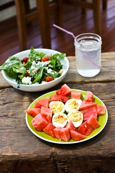 Wow looks delicious. Im craving water melon + eggs + salad now. Basically your entire lunch!