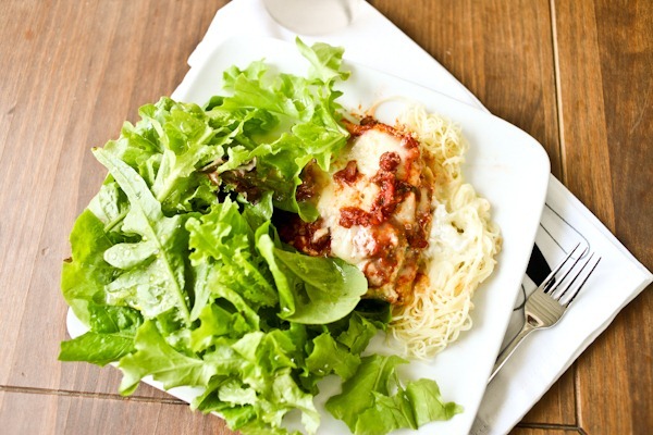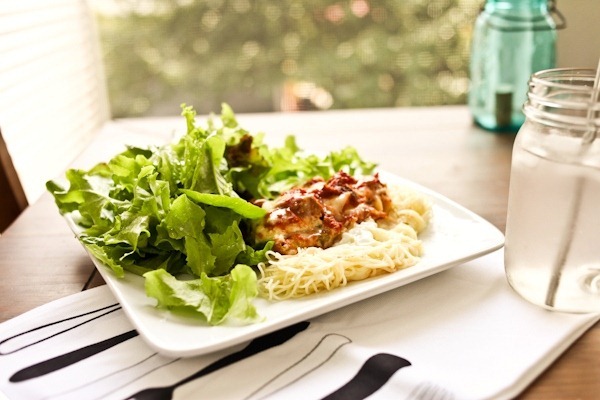 I added some cottage cheese to the angel hair to amp up the protein. It kind of melted away in the microwave, but I actually enjoyed it that way!