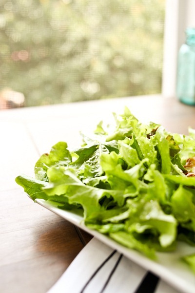 Big salad on the side – dressed simply in olive oil, honey and salt. Fresh, fresh lettuce!