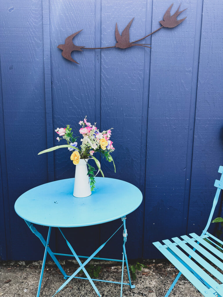 Outdoor dining on the porch is back too! We love eating outside. This seared salmon in a Dijon dressing, herby roasted potatoes, and peppadew veggies combo was so good.