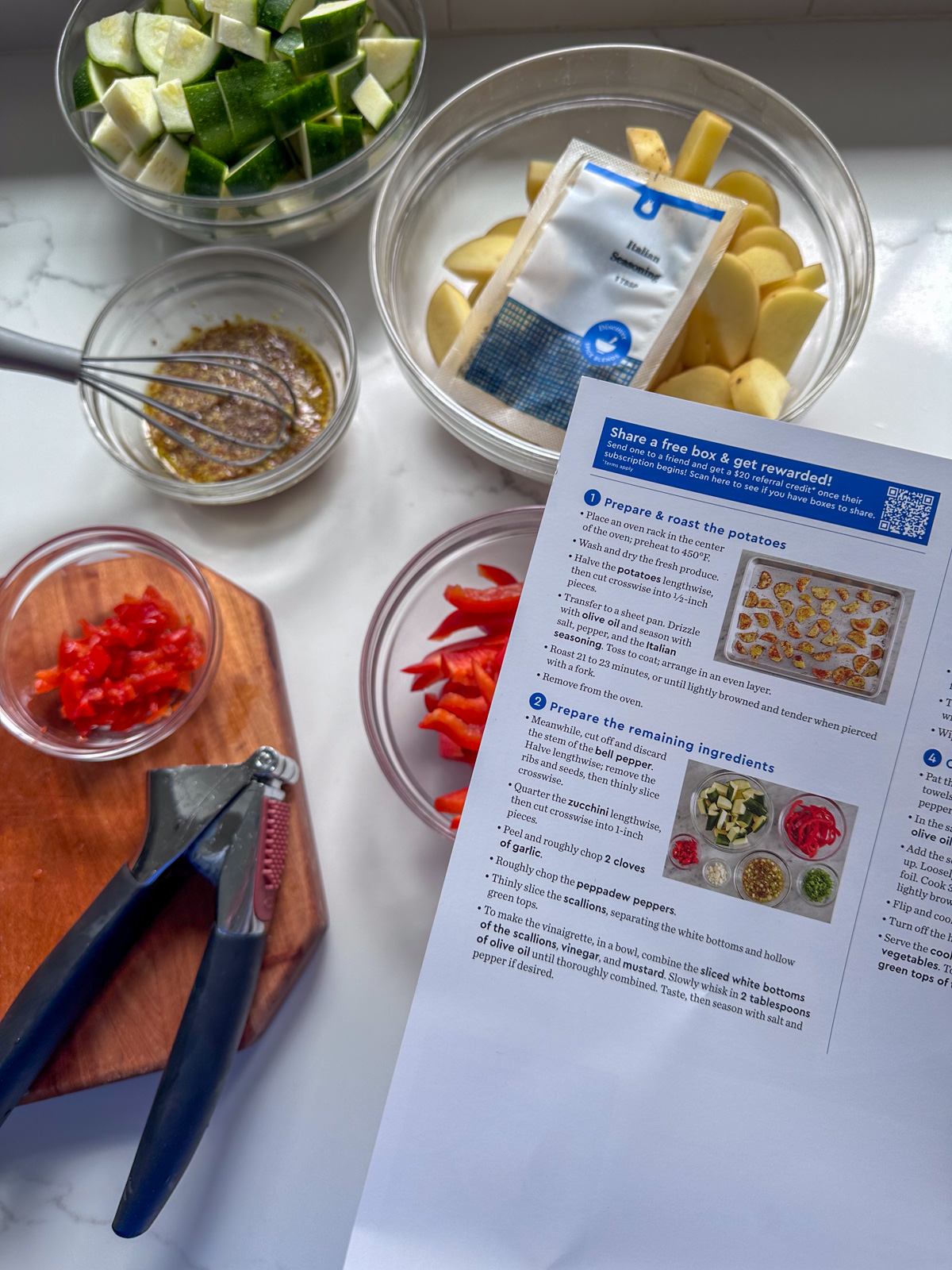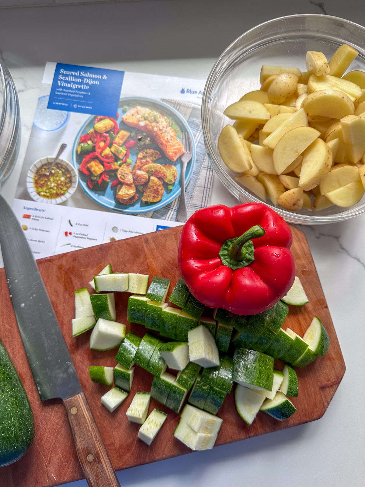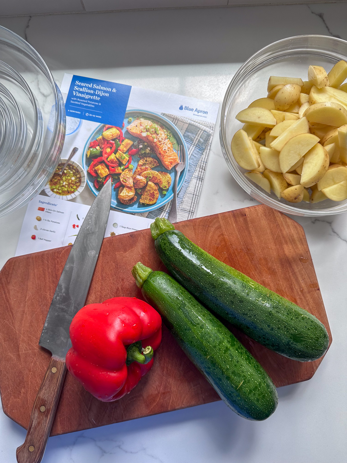 Birch is starting swim team this summer and we’ll have practice everyday starting around 4:45p. Thus I’ve been making more of an effort to do my dinner prep when I’m making lunch! Blue Apron meals are still on the rotation. We order two per week and have them 3/4 of the nights. It has simplified our dinnertime routine so much! I do as much prep as I can earlier so we just have to execute when we come home hungry at 5:30/6.