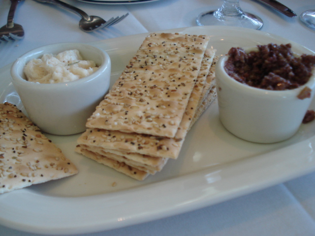 To start, I had a cracker with a little bit of olive tampenade and a crab spread –