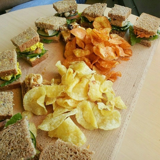 What a delicious lunch! I love the sandwich samples and the chips in the middle. Have a great dinner! 🙂