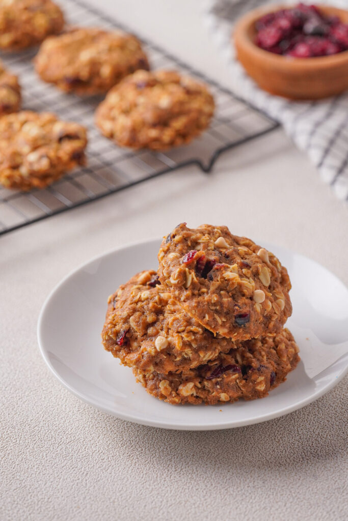 Today’s star combo: White Chocolate Cranberry Oatmeal Cookies. These cozy Christmas cookies that blend hearty oats, sweet white chocolate, and tangy cranberries. Fresh cranberries get a lot of love this time of year, but dried cranberries are sweet and evergreen right from the pantry.