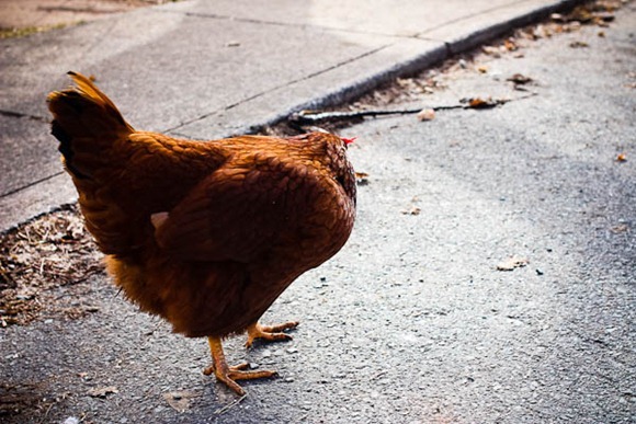 This reminds me of a run I went on when I was visiting San Jose. It was so weird to see a couple of chickens wandering around in a big city. I’m pretty sure someone was in violation of farm animal zoning laws. 🙂
