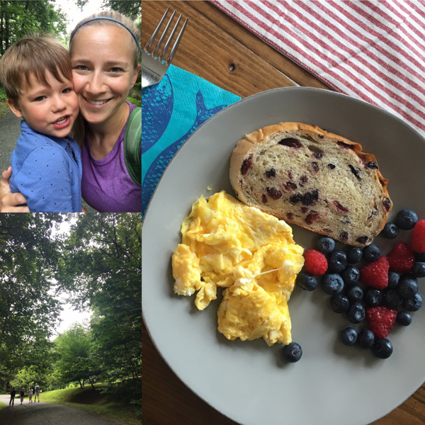 My Saturday morning breakfast was toast, eggs, and fruit. Then Mazen and I headed to the Monticello Trail for a nice little hike!