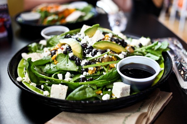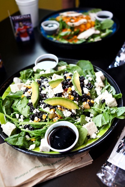 This was a delicious bowl of spinach, tofu, goat cheese, black beans, corn, peppers, avocado and balsamic.