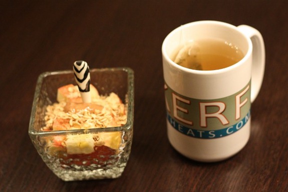 Dinner left me needing a little something more a bit later. I wanted a Caramel Oikos but it was too cold so I heated up an apple instead with cinnamon and the last of my Crunchy Coconut Granola and a tsp of TJ’s PB!