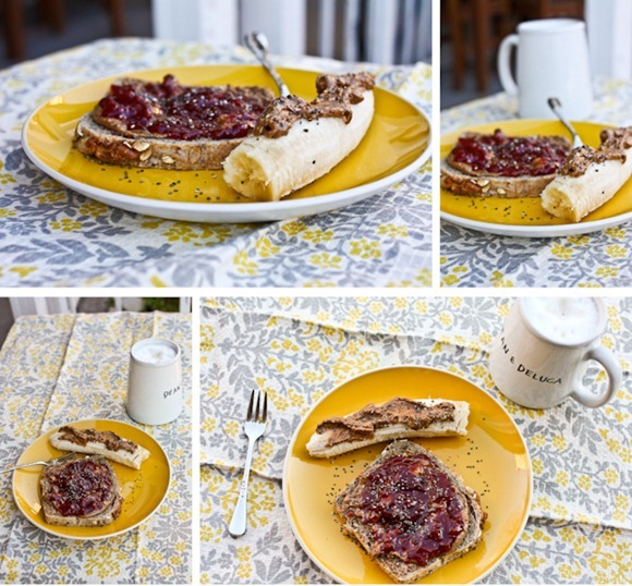 The breakfast you had is something I would have too, I wonder if that is almond butter on your banana? It just looks pretty.