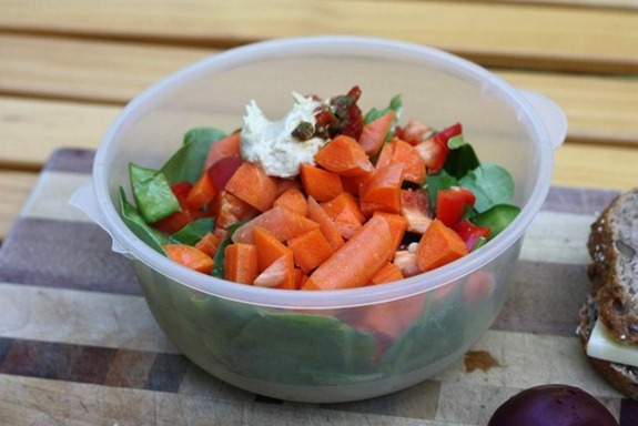LOVE the colours in your salad! 🙂 I have got to try a jam and cheese sandwich!